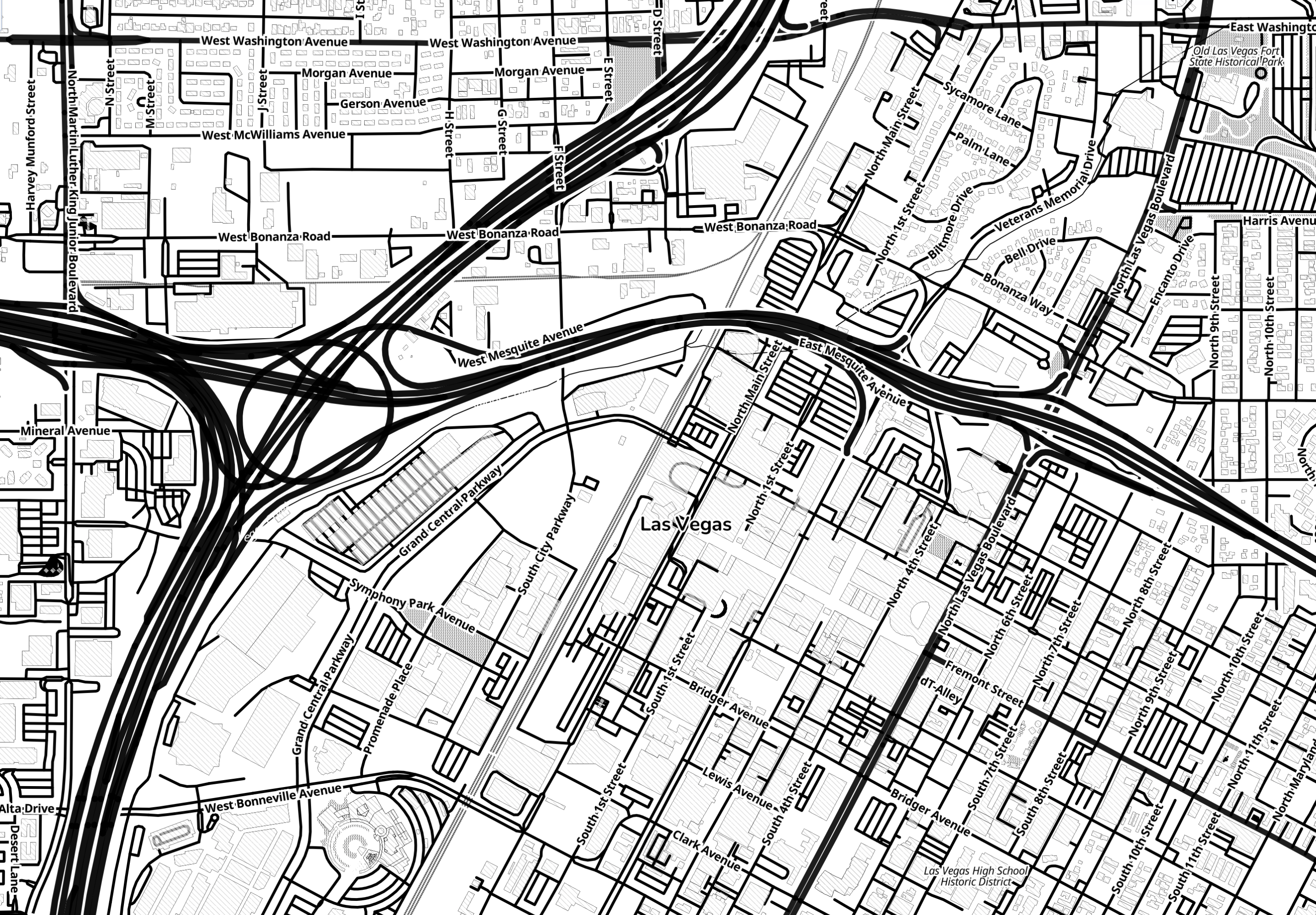 The old Las Vegas strip, however, is characterized by its deference to automobiles, obligatory parking lots, cloverleaf exchanges, wide boulevards, and precarious medians. This part of Las Vegas space operates at the speed of the highway, scaling everything else to the perceptions of fast-moving drivers guided by bombastic signage. Once cars are parked, drivers become pedestrians, and the air-conditioned threshold is crossed, this space yields to vast indoor environments of flashy casinos and themed hotels.